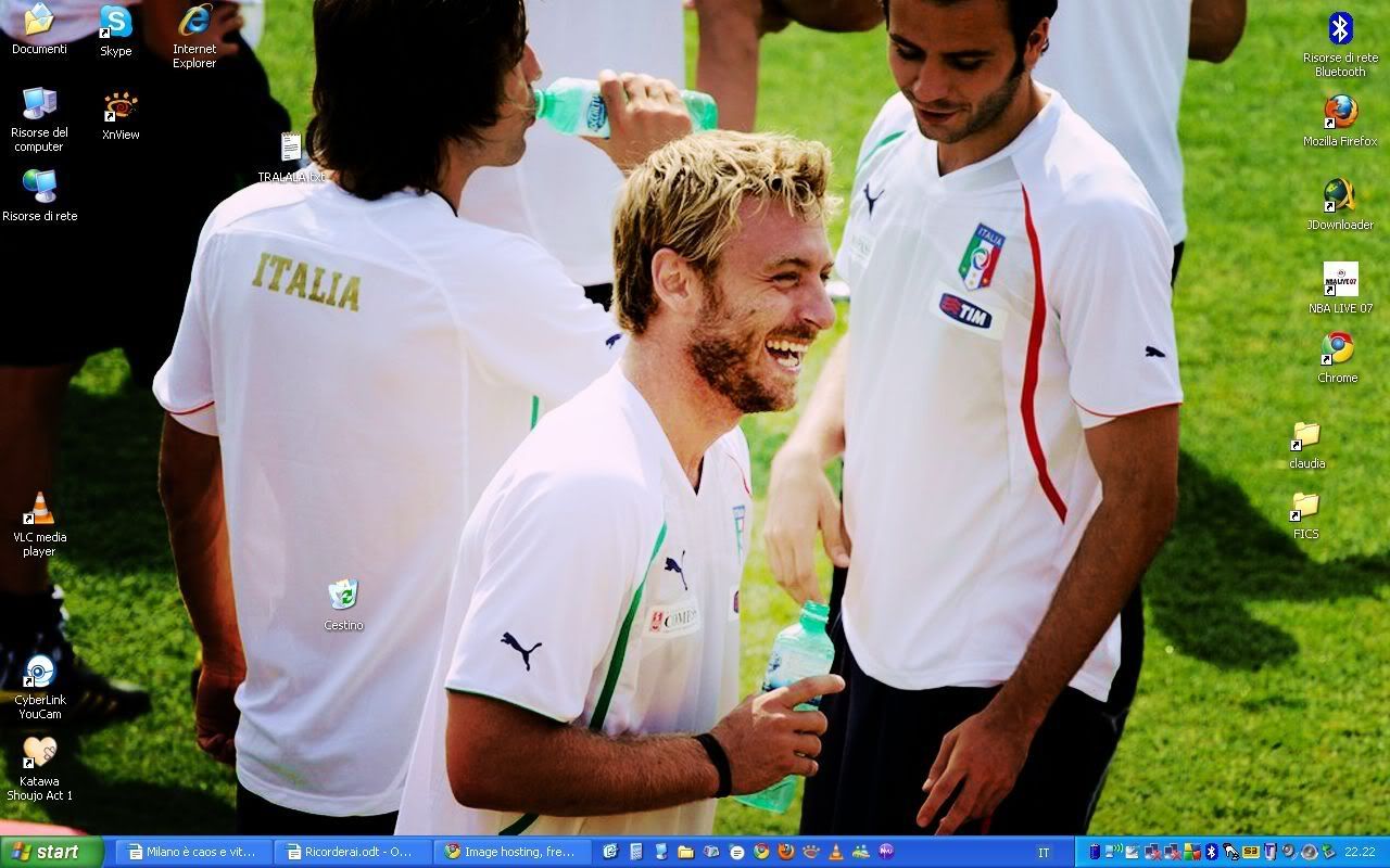 - DDR (click for large version: D). Why? Because it is beautiful! This photos I like a lot, has a wonderful smile and is laughing and happy pucci, has the homeless and that hand is amazing. I do not know, De Rossi makes me stuff and this picture makes me a lot of stuff. And then there is also the Mad bonus, toh. - Look closely and know that the icons, haha, they are all unused XD Except those on the bar below, which, in fact, are the only ones I use. However, the desktop is not a true order of some kind, if not the fact that it is necessary that nothing interferes with the photo of the day. (Change background picture horribly often, Xabi three days ago I started a week ago Scamarcio.)